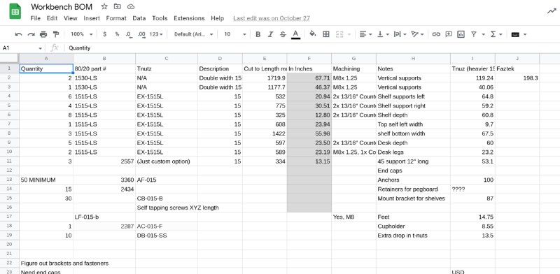 With my newly learned Fusion360 skills, I designed the bench, I just measured each segment in the software, built a spreadsheet (BOM - Bill of Materials), and submitted it to a local supplier.