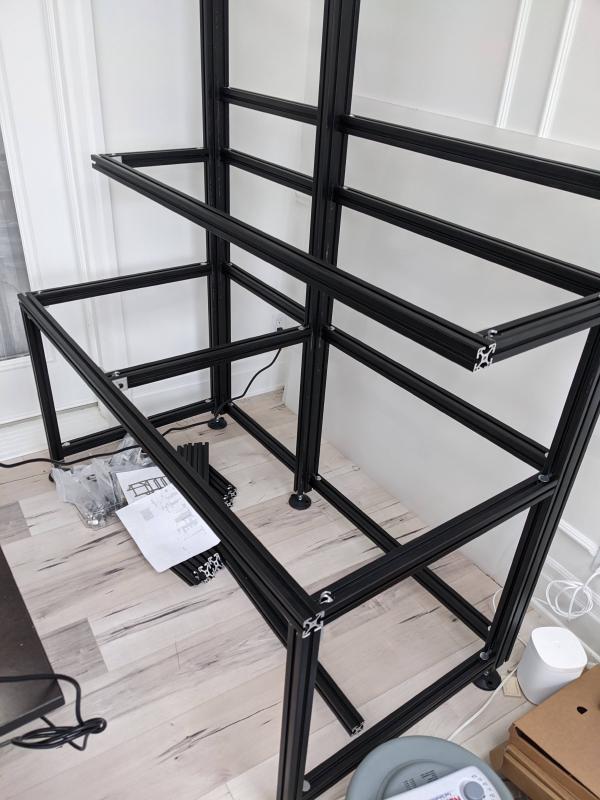 I only had a small 1.5’x1.5’ space next to my 3D printer to do my soldering and assembling of stuff. I realized not having space to do project work was really limiting how much I could do. Goals in a new bench: