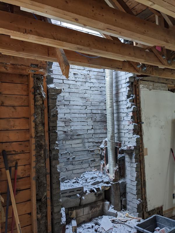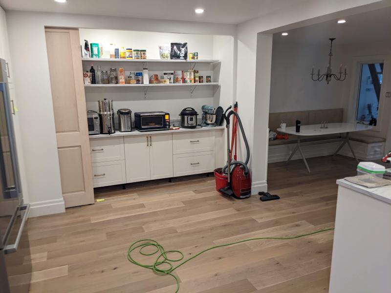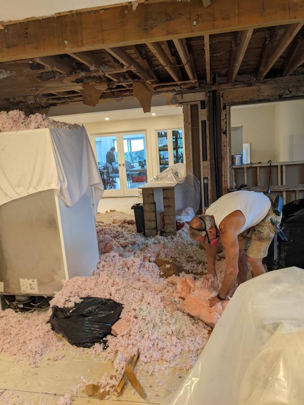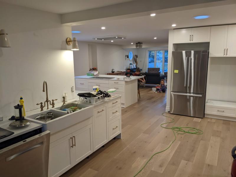 Due to structural issues and drama with engineers, it turned into a “main floor renovation” instead. This was our life for two of the months: