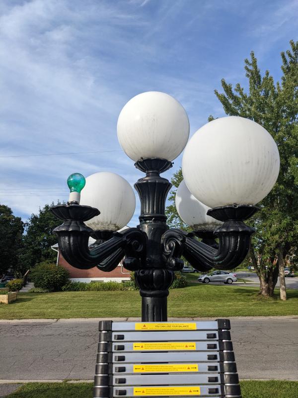 Lamppost Bulb Support - We had this lamppost out front that has never had any love. For Ashley’s birthday, I wanted to revamp it with fake gas bulbs, clear globes etc. It was pretty ugly: