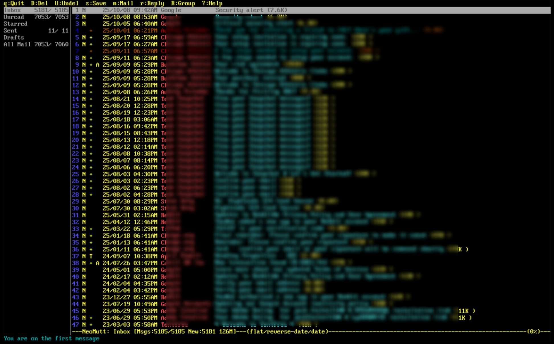 Years ago, I wrote up all my notes on how to get gmail working with neomutt Gmail is slow! Make it fast with using Neomutt. It’s become my most popular post on my site by far.
