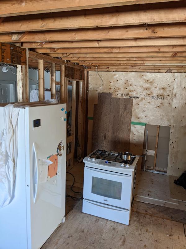 Due to structural issues and drama with engineers, it turned into a “main floor renovation” instead. This was our life for two of the months: