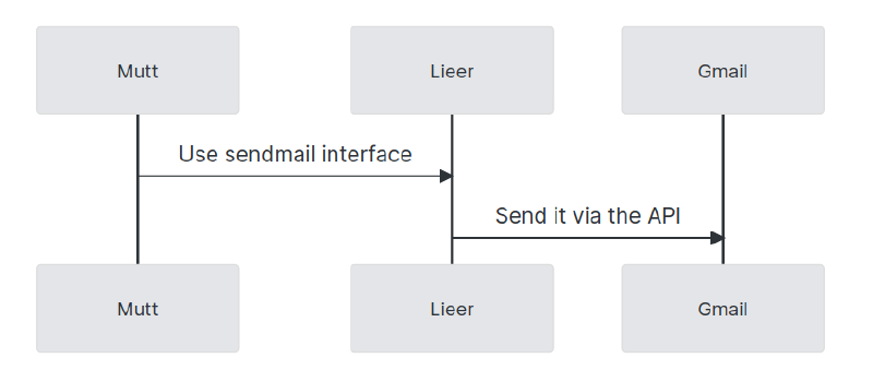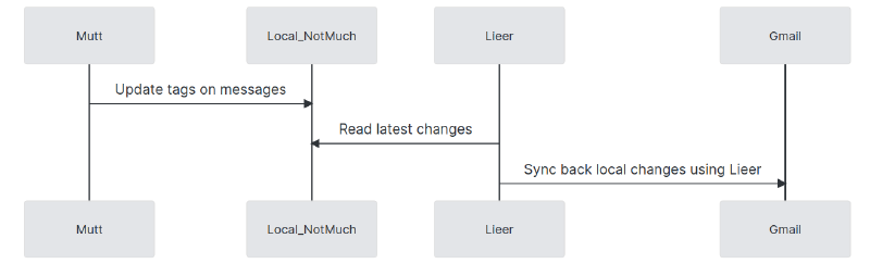 gmibinary) syncs the email and labels between notmuch and the remote gmail account. Gmail has a unique way of managing the labels so lieer is useful. - When sending emails, mutt puts it in the outbox, lieer adds the special gmail tag